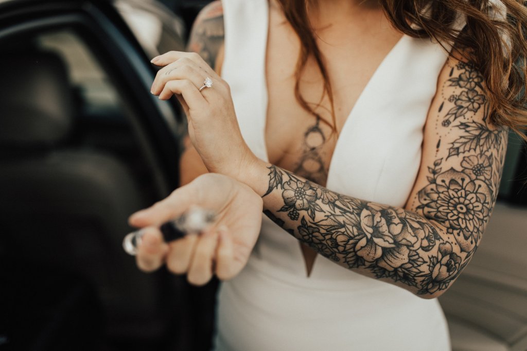 Voici un sujet qui me tient particulièrement à coeur car je suis moi-même tatouée sur les bras et, bien que je ne compte pas me marier un jour ( non, non, je préfères verser ma larme pendant les nombreux mariages que j’aurai le bonheur d’organiser), j’entend régulièrement que cela fait « mauvais genre » de montrer ses tatouages le jour de son mariage voire que ça fait vulgaire.